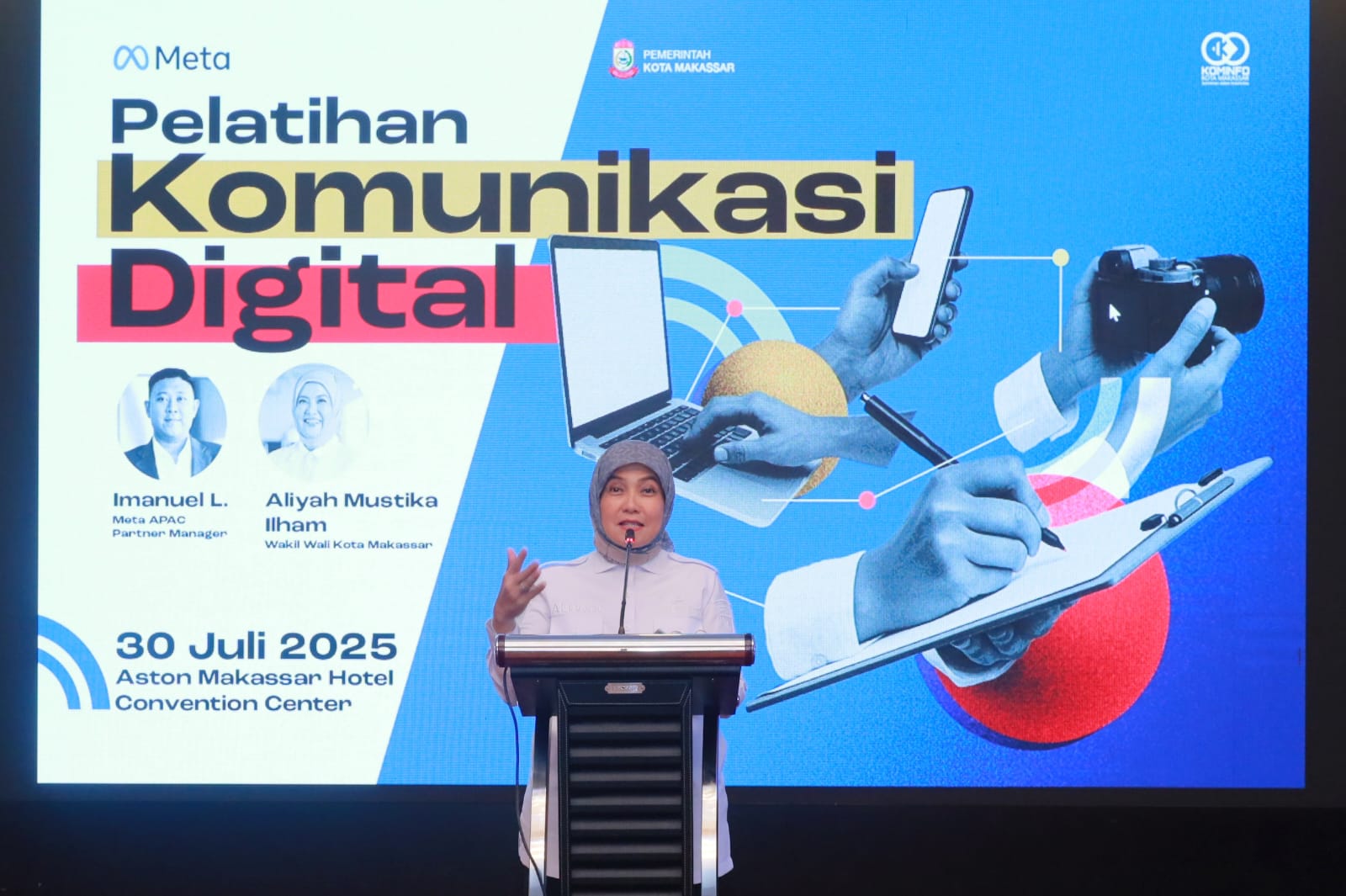 MAKASSAR,PO – Wakil Wali Kota Makassar, Aliyah Mustika Ilham, kembali menunjukkan komitmennya dalam mendorong penguatan kapasitas aparatur pemerintah melalui sambutannya saat membuka Pelatihan Komunikasi Digital yang digelar Dinas Komunikasi dan Informatika (Diskominfo) Kota Makassar bekerja sama dengan Meta Asia Pasifik (APAC), di Aston Hotel & Convention, Makassar, Rabu 30 Juli 2025.
