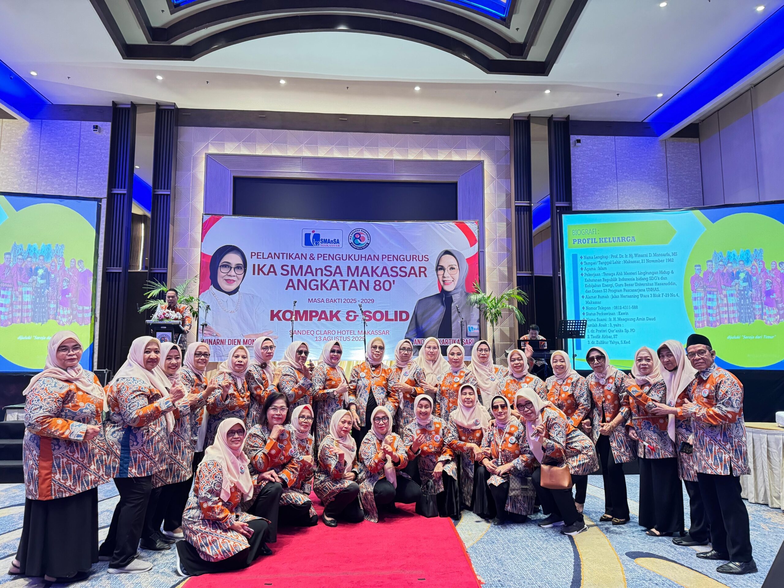 MAKASSAR,PO — Pelantikan dan Pengukuhan Pengurus IKA SMANSA Angkatan 80 periode 2025-2029 di Room Sandeq Claro Hotel Makassar, Rabu (13/08/2025) dengan tema “Kompak dan Solid’ berlangsung semarak dan hikmat.