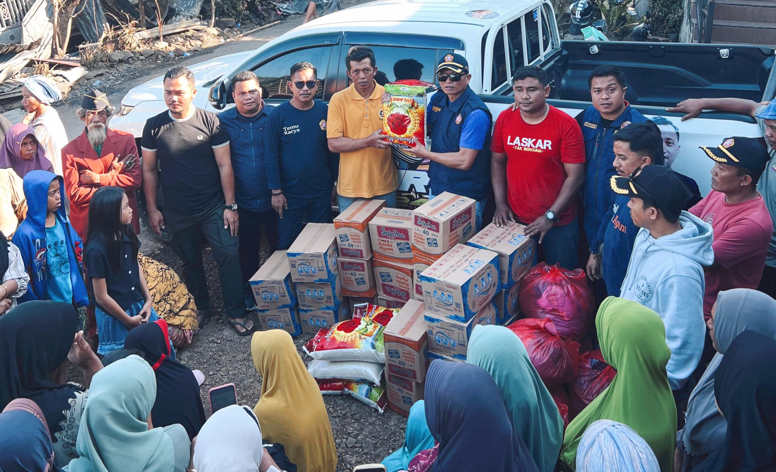 Ketua Karang Taruna bersama pengurus lainya pun mendatangi dengan memberikan bantuan berupa sembako kepada ke tujuh korban kebakaran yang rumahnya hangus terbakar rata dengan tanah.