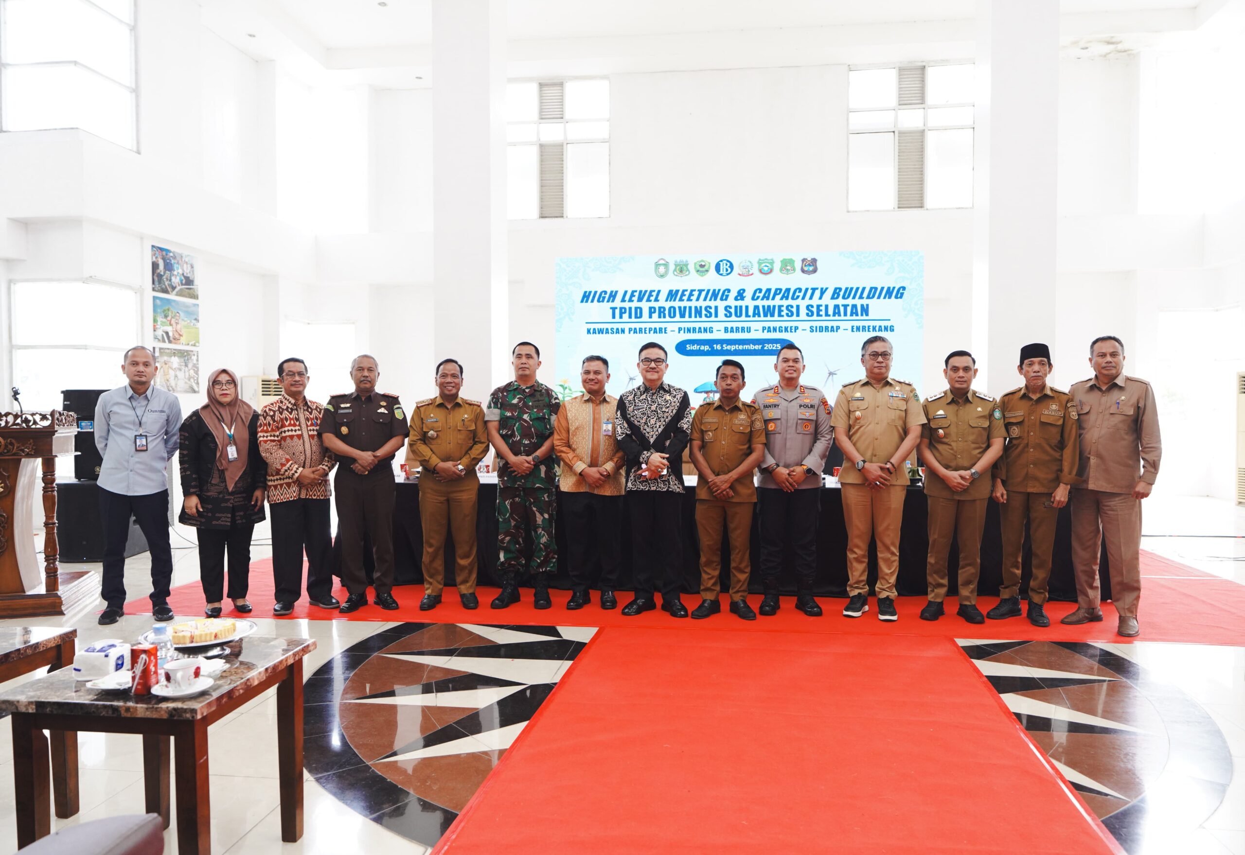 SIDRAP,PO – Sekretaris Daerah Provinsi Sulawesi Selatan, Jufri Rahman, memimpin High Level Meeting (HLM) Tim Pengendalian Inflasi Daerah (TPID) Zona 3 Sulsel yang mencakup Sidrap, Parepare, Pinrang, Barru, Pangkep, dan Enrekang. Pertemuan berlangsung di Kantor Bupati Sidrap pada Selasa, 16 September 2025.