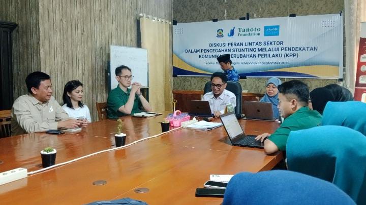 JENEPONTO,PO – Pemerintah Daerah melalui Dinas Kesehatan gelar diskusi bersama UNICEF, Tanoto Foundation dan Jenewa Madani Indonesia untuk membahas upaya Percepatan Pencegahan Stunting melalui Pendekatan Komunikasi Perubahan Perilaku (KPP), di Kabupaten Jeneponto, Rabu, 17 September 2025.