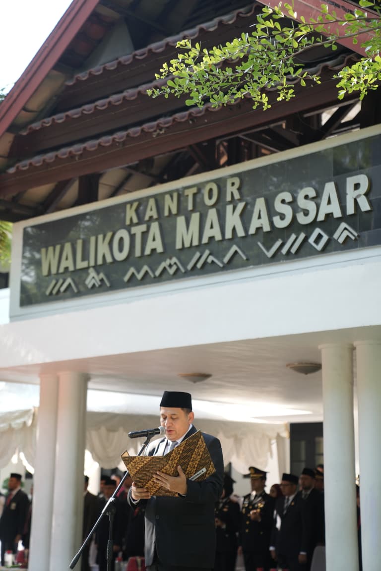 Wali Kota Makassar, Munafri Arifuddin, bertindak sebagai inspektur upacara. Bersama ratusan peserta upacara berdiri tegak, mengenakan seragam rapi, dengan wajah penuh khidmat.