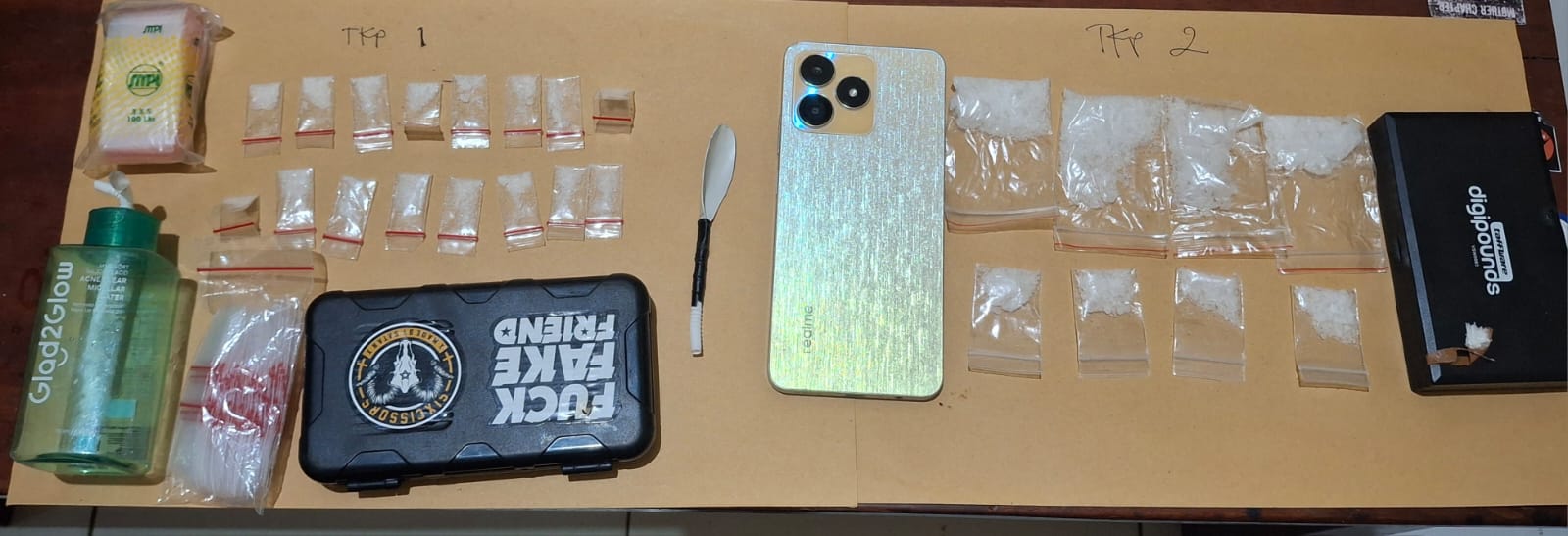 “Tim kemudian menuju lokasi kedua dan menemukan delapan saset sabu, terdiri atas empat saset ukuran sedang dan empat saset besar,” tambahnya.