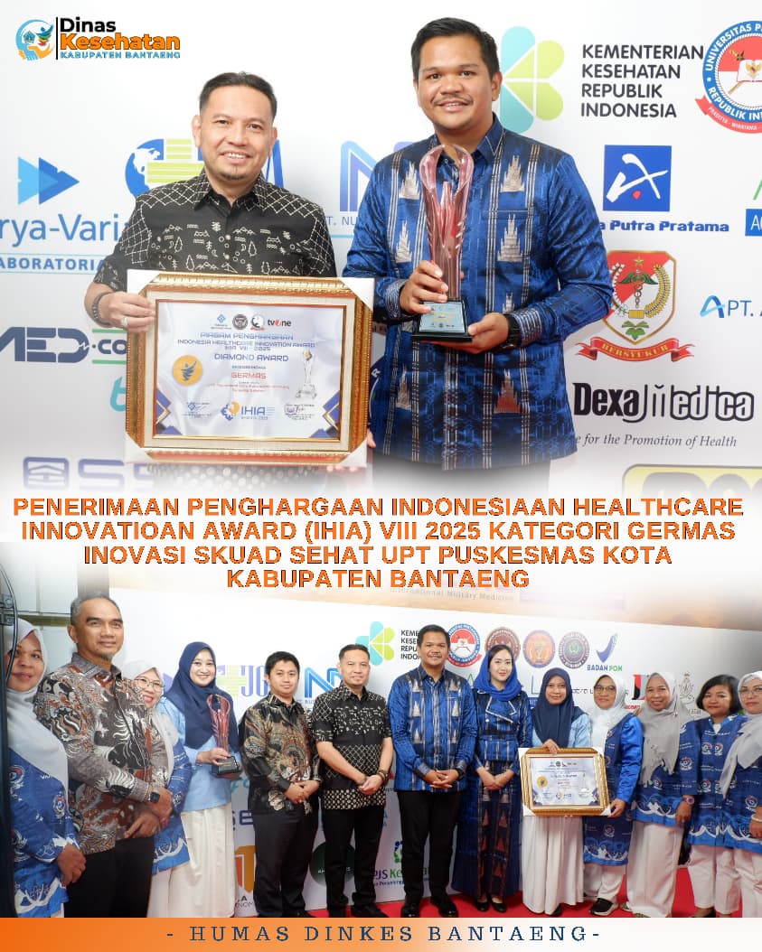 BANTAENG,PO — Untuk pertama kalinya dalam sejarah Indonesia Healthcare Innovation Awards (IHIA), penghargaan tertinggi Diamond Award diboyong keluar dari Pulau Jawa. Kabupaten Bantaeng, Sulawesi Selatan, mencatat sejarah gemilang dengan menempati peringkat pertama nasional lewat inovasi unggulan Skuad Sehat — program kolaboratif dari Puskesmas Kota Bantaeng yang berhasil menyingkirkan ratusan peserta dari seluruh Indonesia.