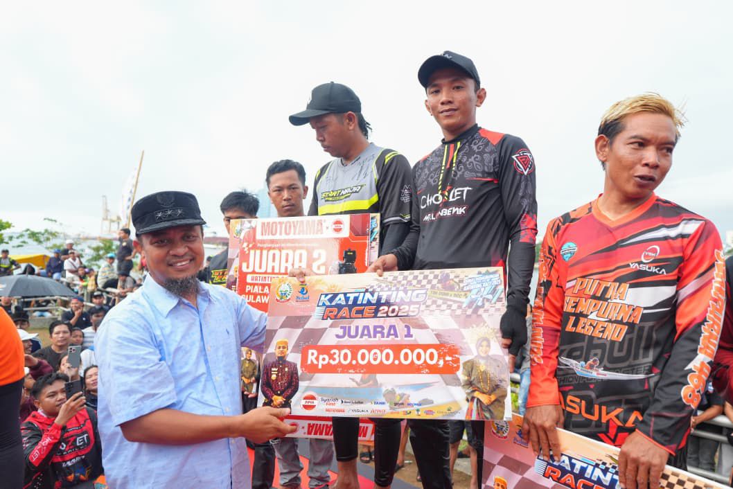 “Alhamdulillah hari ini kita menyaksikan langsung semangat luar biasa para peserta di Grand Final Katinting Race 2025. Saya ucapkan selamat kepada rider asal Kabupaten Sidrap yang berhasil meraih juara pertama,” ujar Andi Sudirman.