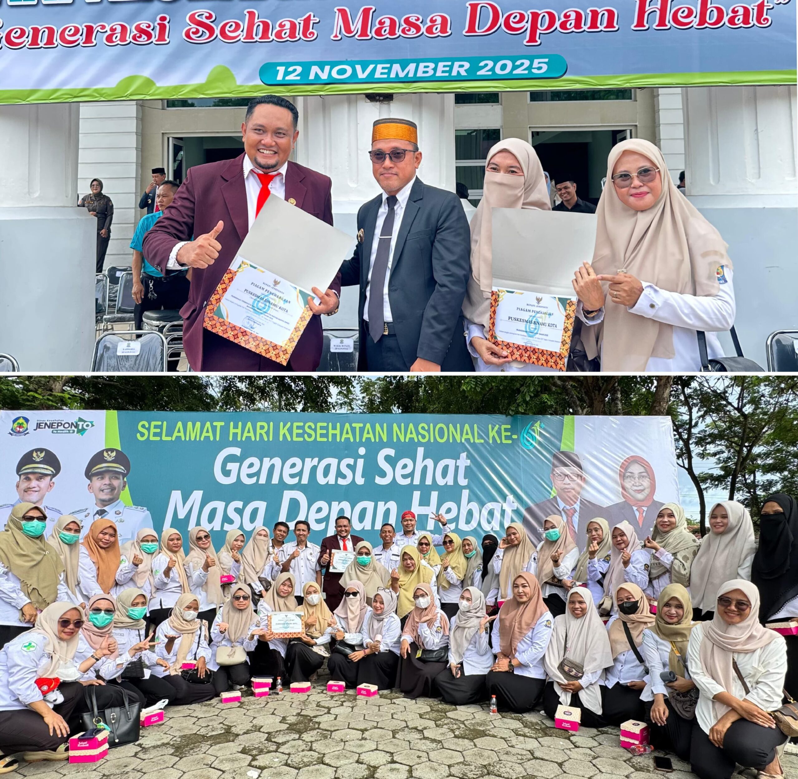 Dimana, Penghargaan tersebut diserahkan langsung oleh Bupati Jeneponto, didampingi Kepala Dinas Kesehatan Kabupaten Jeneponto, pada upacara puncak peringatan HKN yang berlangsung di halaman Kantor Bupati Jeneponto.