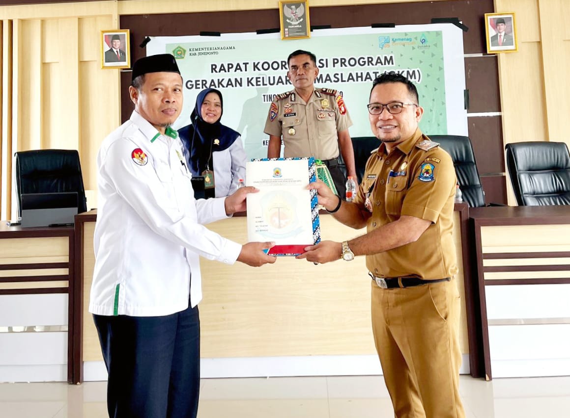 “Kami serahkan langsung melalui perwakilan KUA Tarowang (Abdul Salam), di saksikan oleh Kasi Binmas Polres Jeneponto, Wakil Ketua Pengadilan Agama, Kepala Kemenag Jeneponto dan Semua Kepala KUA di sebelas Kecamatan,”ungkapnya, kepada awak media publikasionline.id lewat rilisnya.