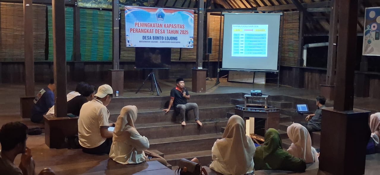 BANTAENG,PO – Pemerintah Desa Bonto Lojong, Kecamatan Uluere, Kabupaten Bantaeng, menggelar pelatihan peningkatan kapasitas perangkat desa pada Jum’at (9/1/2026) di Pusat Pendidikan Lingkungan Hidup (PPLH) Puntondo, Desa Laikang,Kecamatan Laikang Kabupaten Takalar.