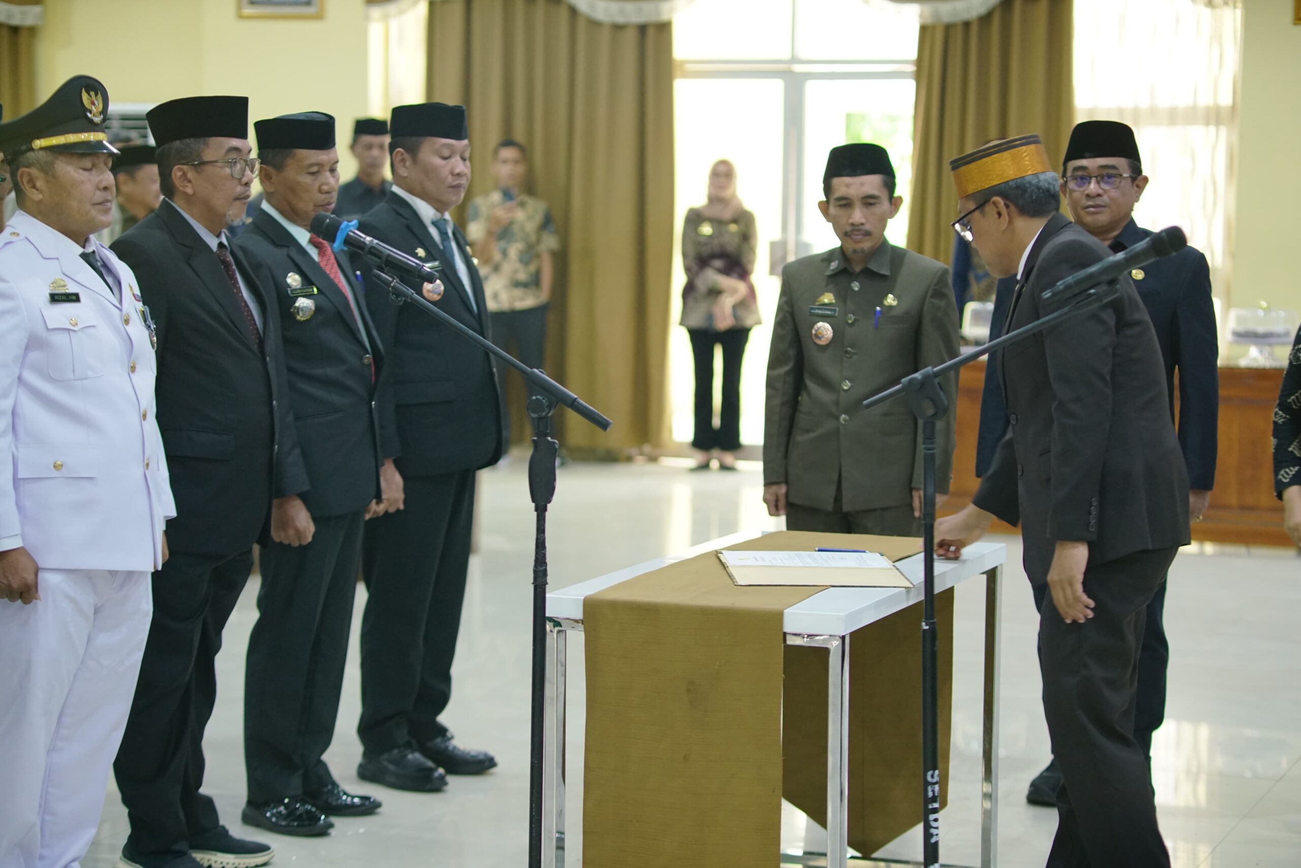 Hari ini kita melantik dan mengambil sumpah lima orang pejabat pimpinan tinggi pratama dan satu orang pejabat administrator.