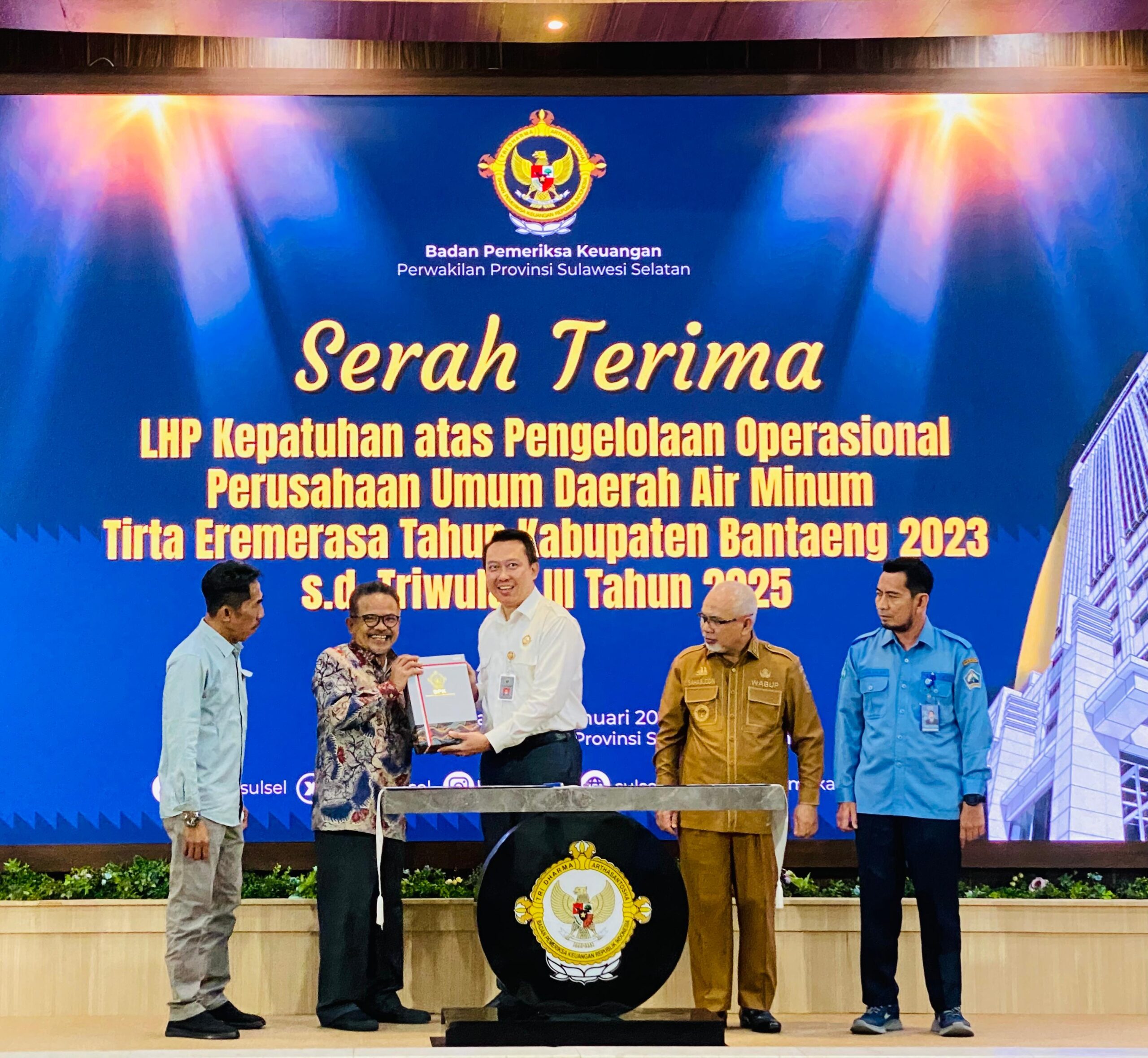 Dia menyebut, khusus untuk Kabupaten Bantaeng, pemeriksaan dilakukan untuk PDAM Bantaeng. Ada sejumlah rekomendasi yang dilahirkan dari pemeriksaan untuk PDAM Bantaeng itu. Dia menyebut, pada Perumda Air Minum Tirta Eremerasa ada ditemukan pengelolaan air dan tunggakan pelanggan yang tidak sesuai dengan ketentuan. Pengelolaan ini mengakibatkan Perumda Air Minum Tirta Eremerasa kehilangan kesempatan untuk memperolah pendapatan.