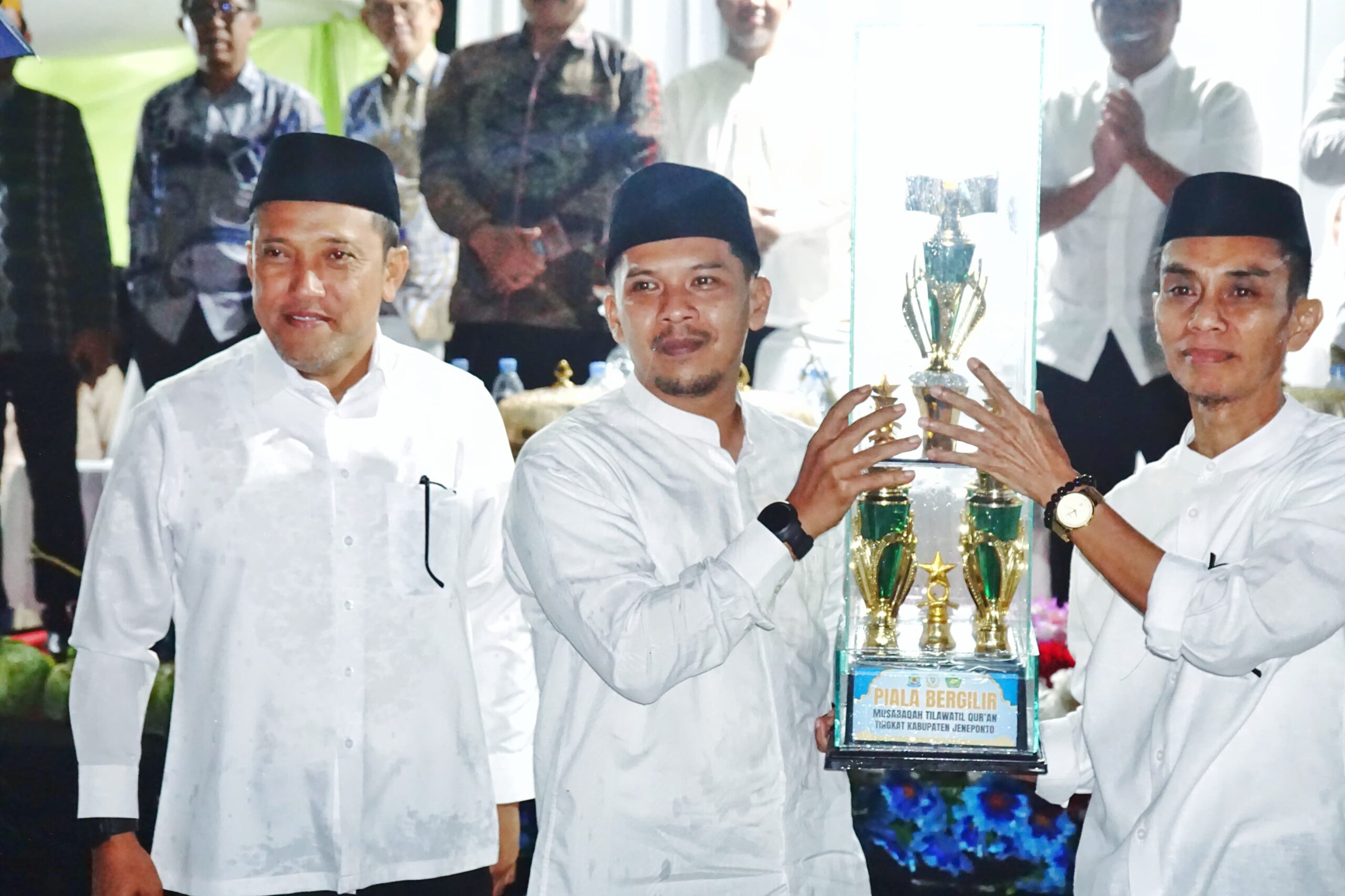 Prosesi penyerahan piala bergilir dilakukan dari Camat Tamalatea, Haryadi ST, selaku juara umum tahun lalu kepada Bupati Jeneponto, kemudian diserahkan kepada Wakil Bupati sebagai perwakilan kafilah, dan selanjutnya kepada Panitia MTQ.