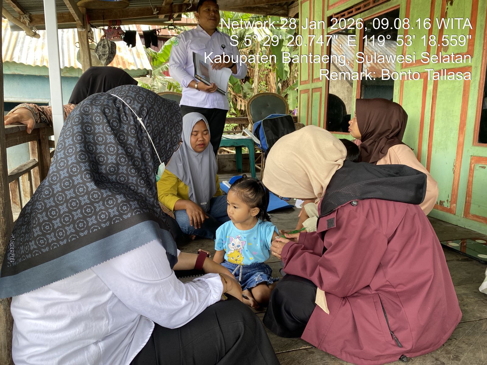BANTAENG,PO- UPT Puskesmas Loka melaksanakan kunjungan kepada balita yang mengalami masalah gizi di Dusun Senea, Desa Bonto Tallasa, Rabu (28/1/2026). Kegiatan ini dilakukan sebagai bentuk kepedulian tenaga kesehatan dalam memastikan tumbuh kembang anak tetap terpantau dengan baik.