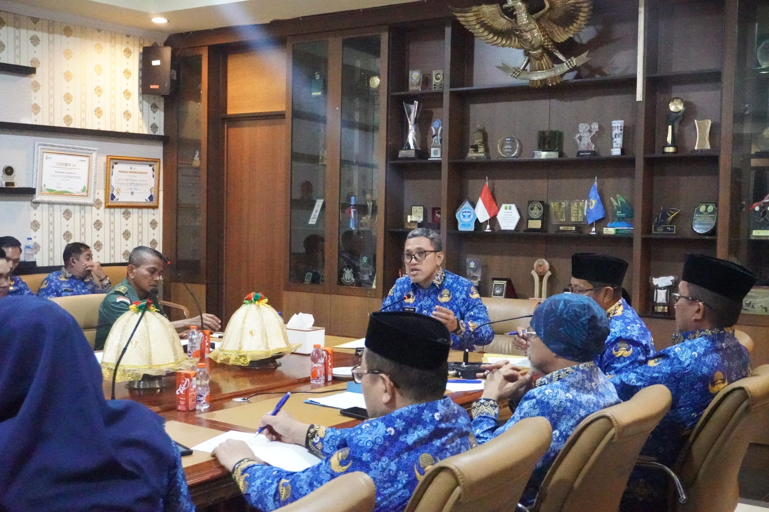 Agenda utama rapat membahas langkah strategis dalam memastikan ketersediaan bahan pokok serta rencana pelaksanaan operasi pasar menjelang Bulan Suci Ramadan 1447 Hijriah.