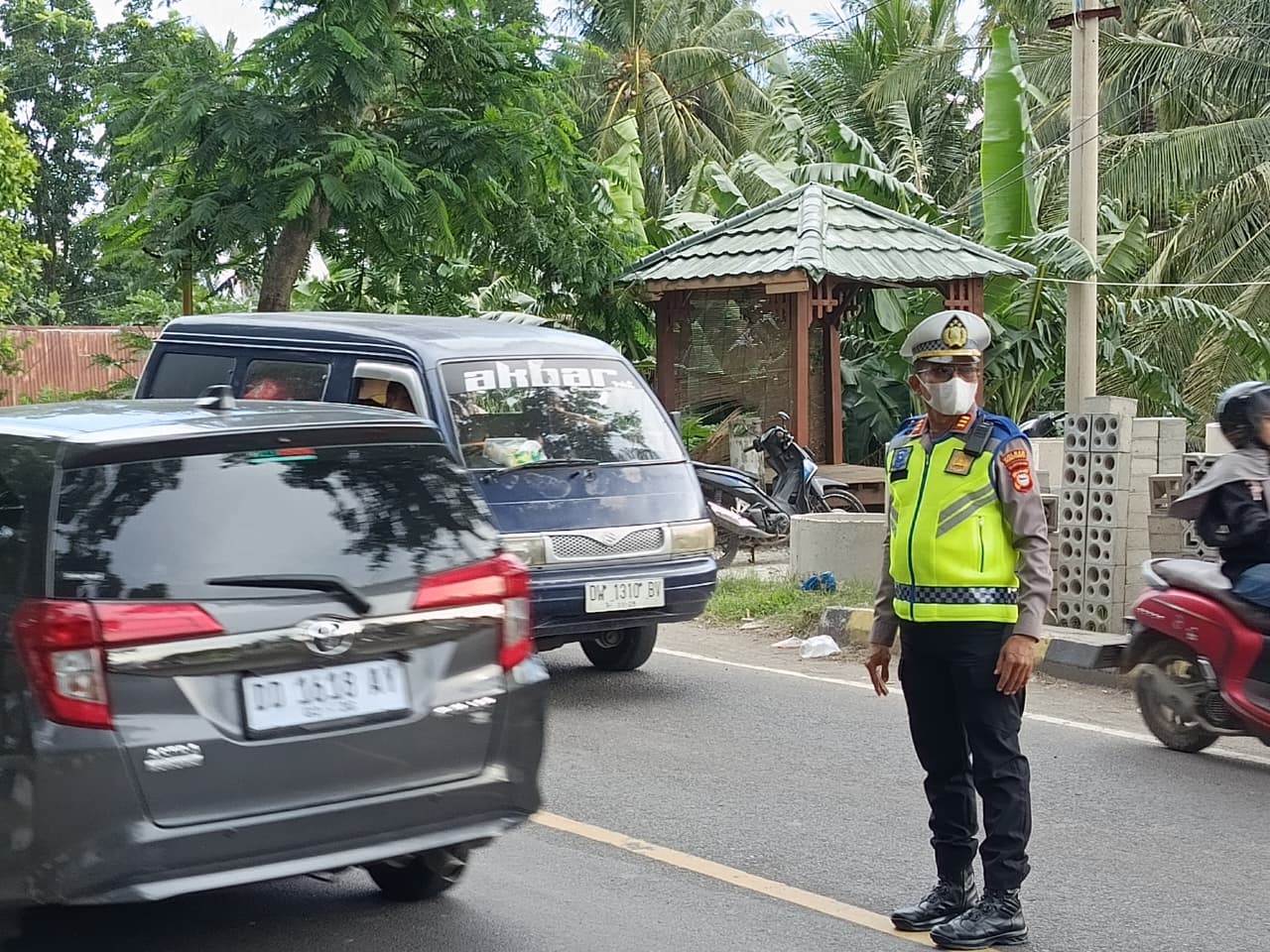 “Mengantisipasi kemacetan panjang, arus lalulintas meningkatkan disore hari, personil sat lantas pun atur arus lalulintas kendaraan.