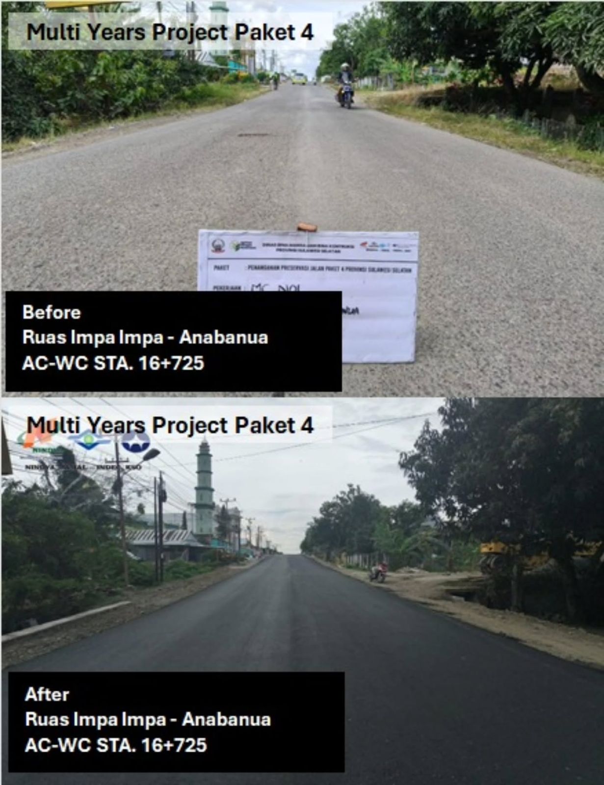 Adapun pada Paket 4 dengan nilai Rp615 miliar yang meliputi 15 ruas jalan, pengerjaan terus berlanjut pada ruas Impa-Impa – Annabanua di Kabupaten Wajo.