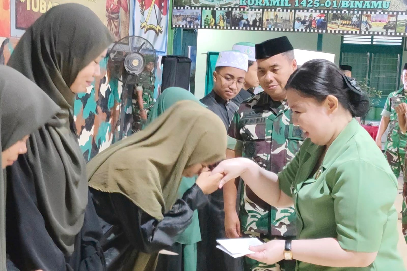 Santunan tersebut diserahkan langsung oleh Dandim 1425/Jeneponto Letkol Inf Abdul Muthalib Tallasa didampingi Ketua Persit Kartika Chandra Kirana Cabang XXXIII Dim 1425/Jeneponto sebagai bentuk kepedulian dan perhatian kepada para santri yang sedang menempuh pendidikan agama serta menghafal Al-Qur’an.