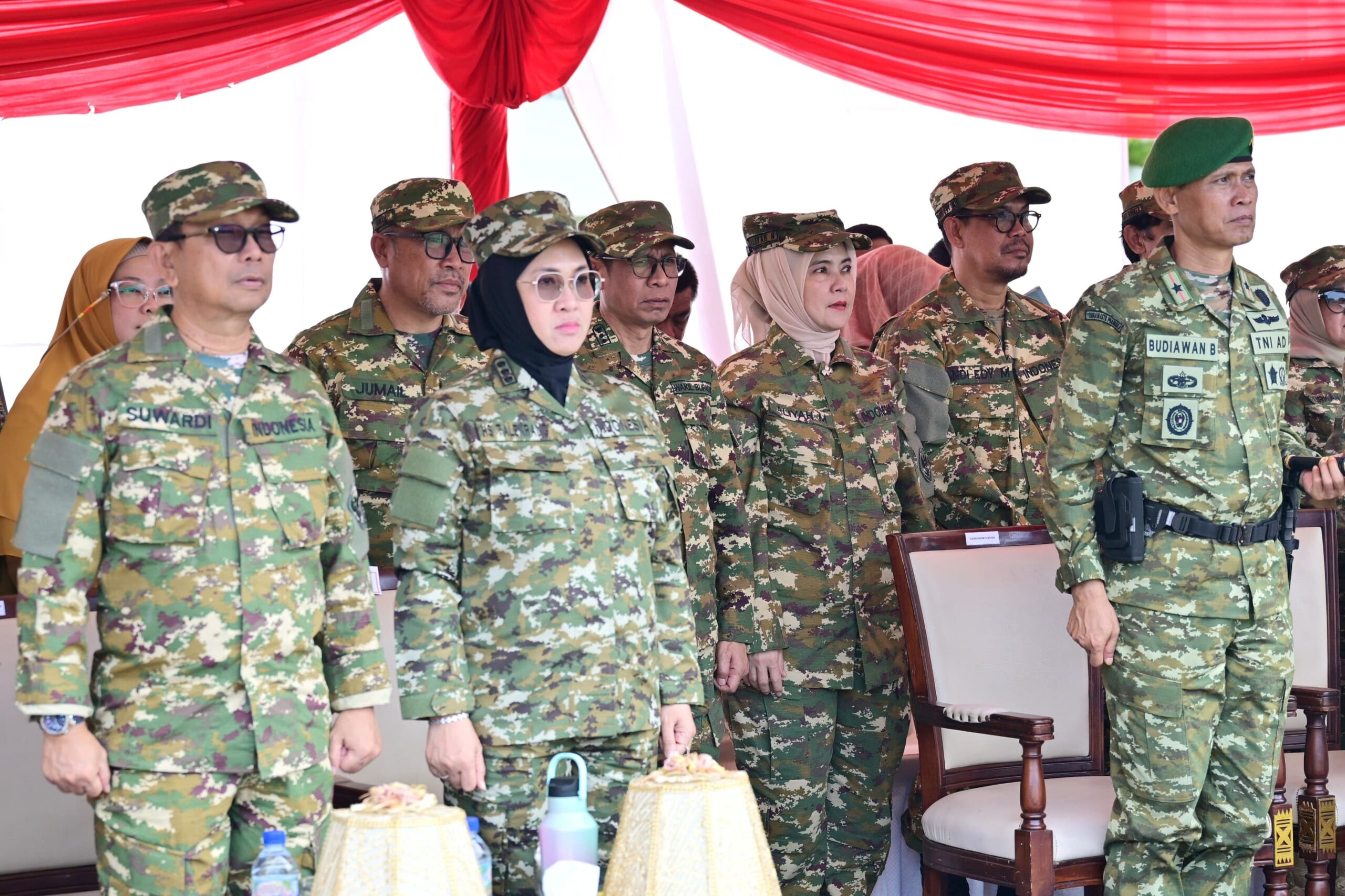 “Kegiatan ini bukan hanya menjadi bagian dari penguatan kapasitas dan kedisiplinan aparatur, tetapi juga merupakan langkah penting dalam menanamkan semangat bela negara, loyalitas, serta tanggung jawab kebangsaan di kalangan ASN dan kepala desa,” ujar Aliyah Mustika Ilham.