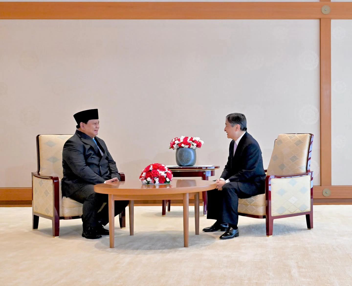 Dalam perbincangan tersebut, Presiden Prabowo dan Kaisar Naruhito bertukar pandangan mengenai berbagai isu strategis yang menjadi kepentingan bersama, mulai dari penguatan kerja sama investasi, pengembangan sektor energi, hingga komitmen terhadap pelestarian lingkungan hidup.