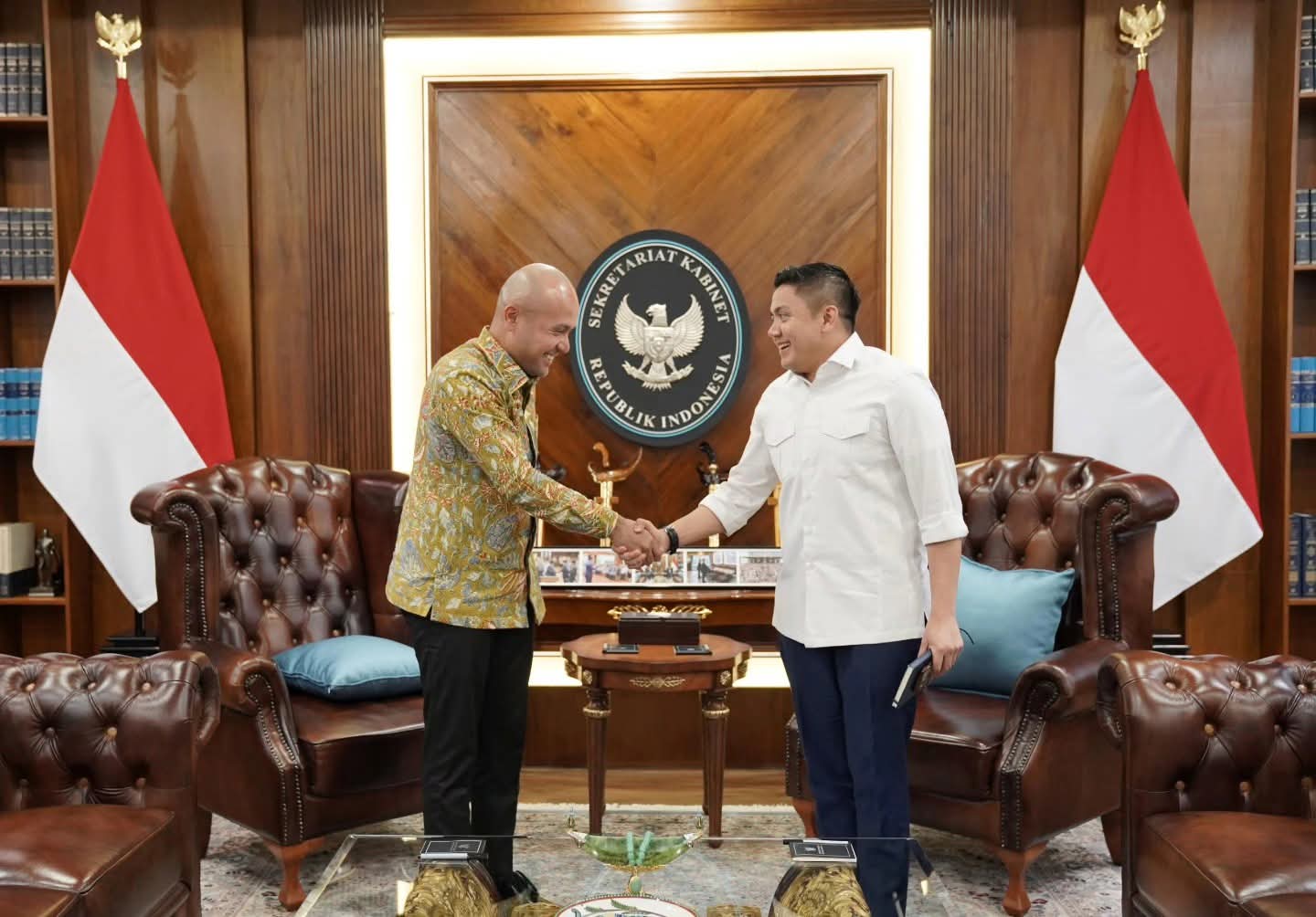 JAKARTA,PO – Sekretaris Kabinet Teddy Indra Wijaya menerima kunjungan Ketua Umum HIPMI Akbar Himawan Buchari di Kantor Sekretariat Kabinet, Senin (6/4/2026) kemarin.