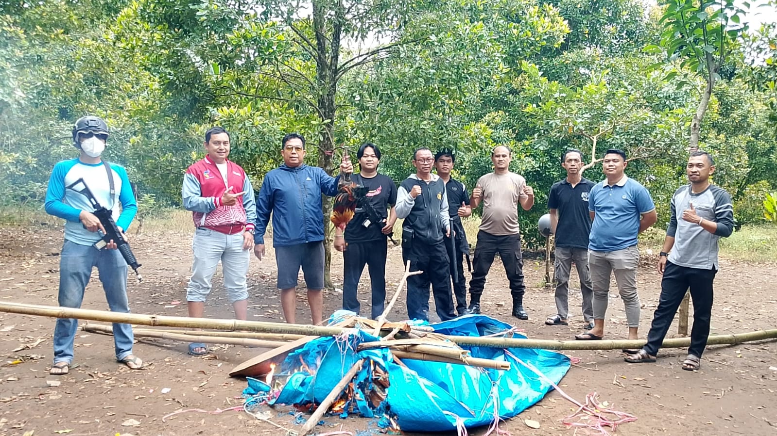 Di lokasi kejadian, polisi menemukan sejumlah barang bukti, di antaranya satu ekor ayam jantan aduan serta tenda berwarna biru yang diduga digunakan sebagai penutup arena. Sejumlah barang lainnya langsung dimusnahkan di tempat.