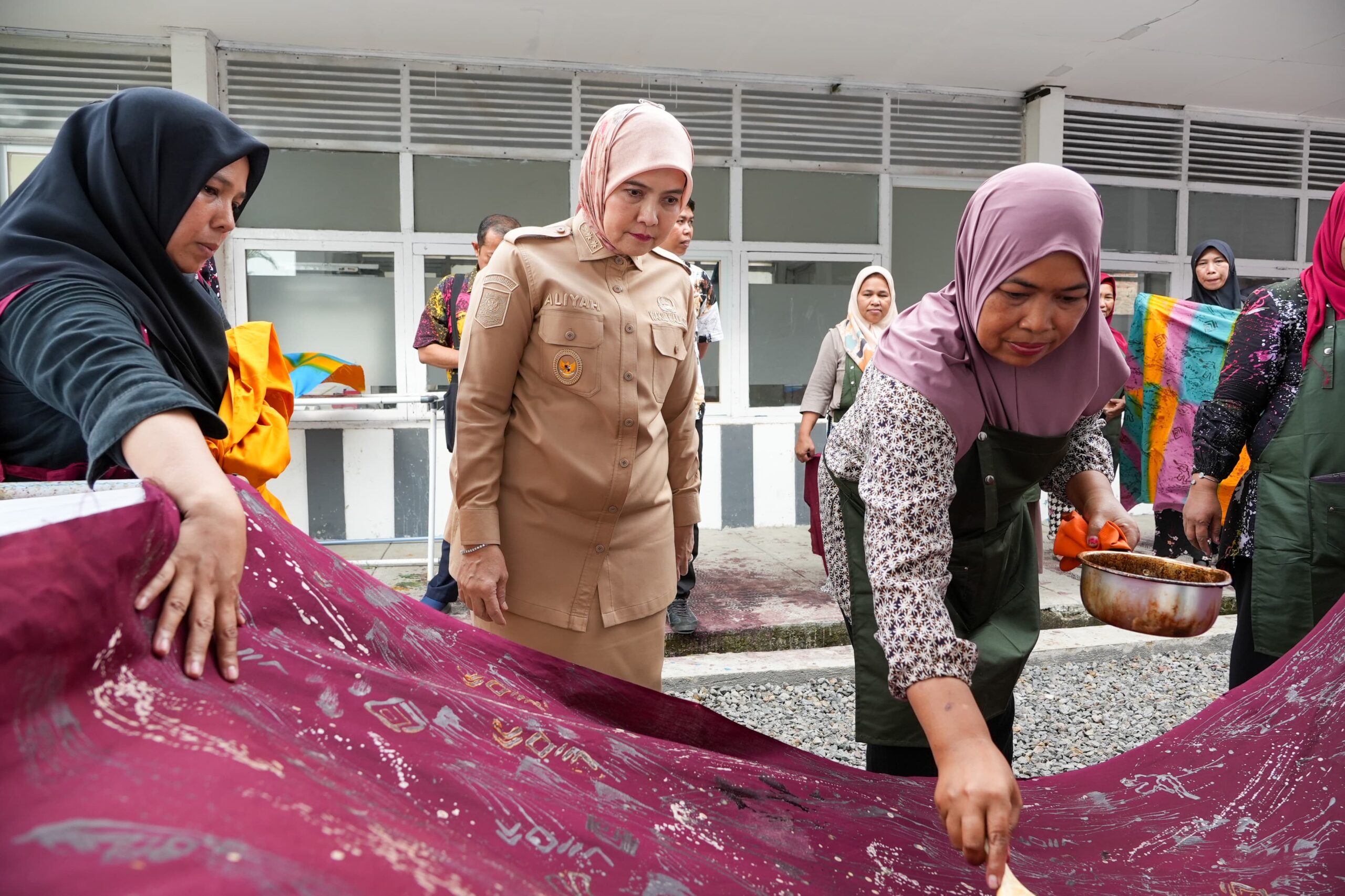 Dalam kesempatan itu, Aliyah Mustika Ilham meninjau langsung kegiatan pelatihan batik ciprat dan menjahit yang diikuti oleh 16 peserta.
