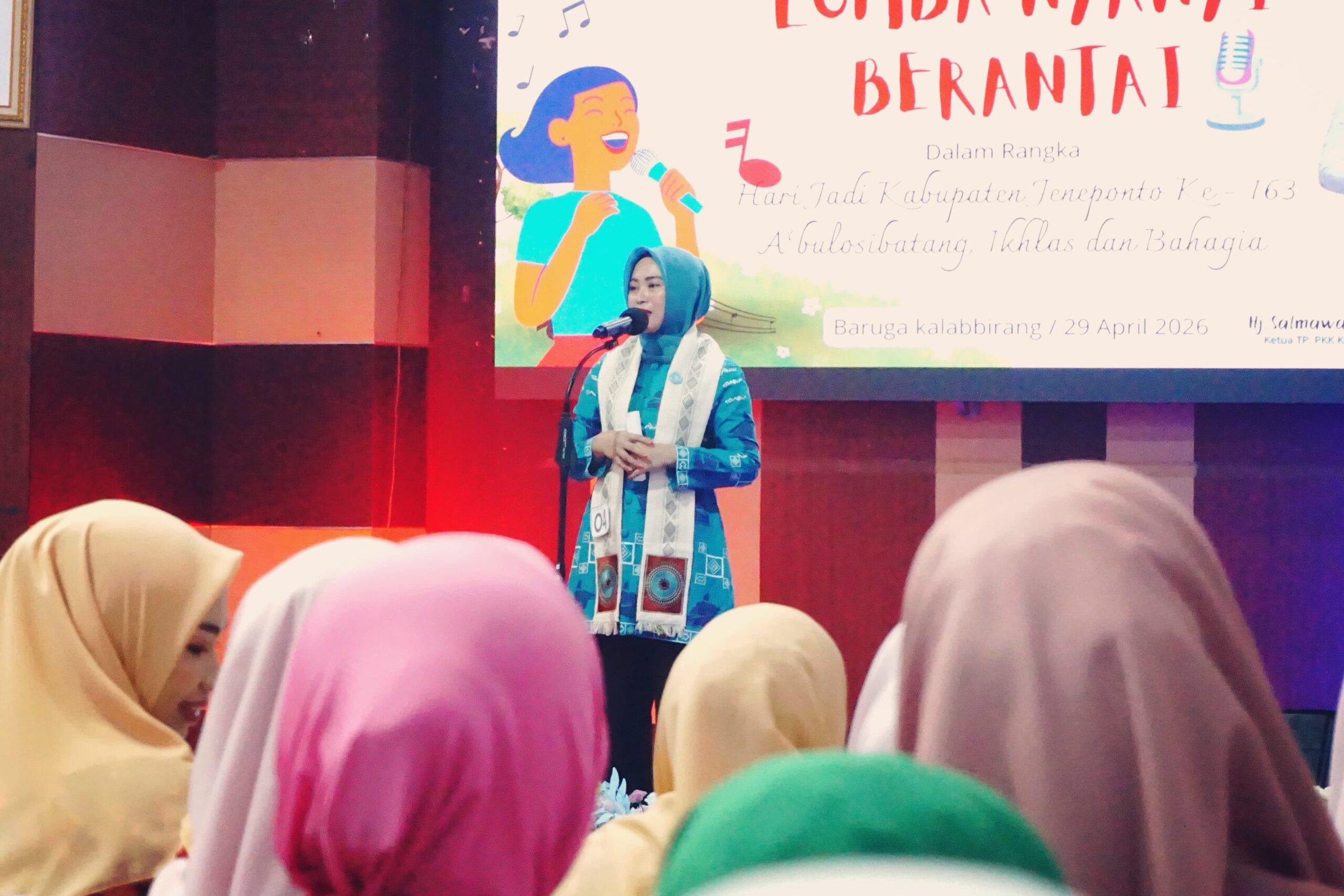 JENEPONTO,PO – Tim Penggerak PKK Kabupaten Jeneponto turut memeriahkan Hari Jadi Jeneponto ke 163 Tahun 2026 dengan mengelar kegiatan lomba nyanyi berantai yang berlangsung meriah, di Aula Kalabbirang, Rumah Jabatan Bupati Jeneponto, Rabu, 29 April 2026.