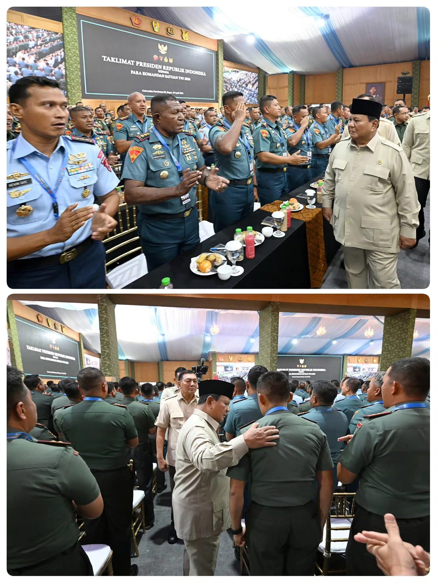 Dalam arahannya yang berlangsung selama kurang lebih tiga jam, Presiden Prabowo menekankan pentingnya peran Komandan Satuan sebagai garda terdepan pertahanan negara yang bersentuhan langsung dengan masyarakat.